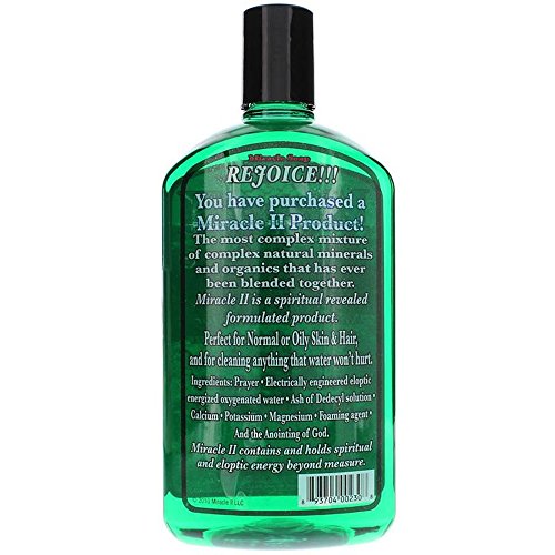 Available in 22oz or Gallon sizes. This multi-purpose liquid green soap replaces your bathing, laundry and household cleaning products. It's a soap, cleaning agent, degreaser, and deodorizer all in one. Miracle II Soap cleans your home, laundry, face & skin, your car, and more -- including your windows. Naturally concentrated, and biodegradable.